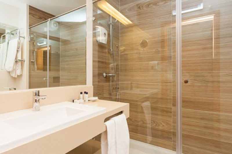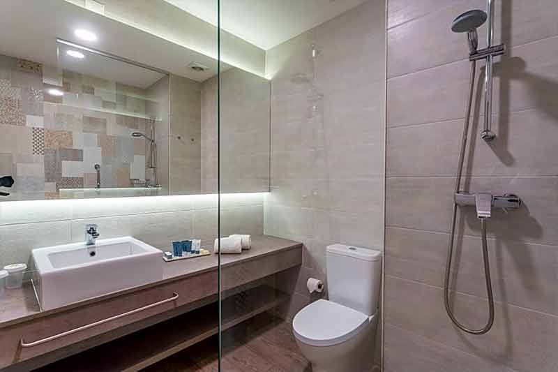 Huoneissa TV, suihku ja wc, ilmastointi, minibaari ja tallelokero